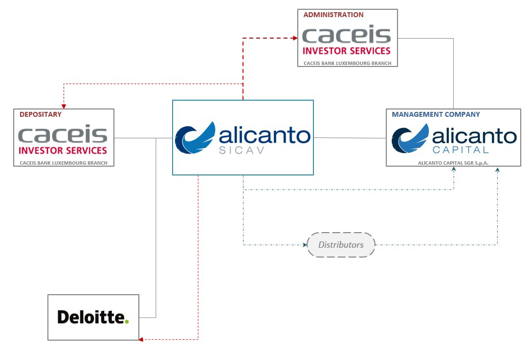 ALICANTO belongs to the category of privileged SICAVs (in which the operative and investment activities are not carried out directly by the Board of Directors of the SICAV but are delegated to a specialized third-party company, the Management Company). This is an additional protection for investors who benefit from a double level of control over the activities carried out.